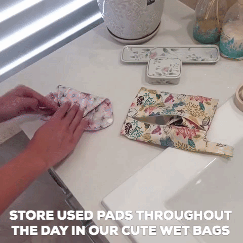 Fold the pad over itself and snap it shut with the buttons, you can choose to rinse before or not (depending on your location/circumstances) and insert into the wet bag. Folding the pads this way and also using our wet bag will ENSURE there are no leaks or smells.